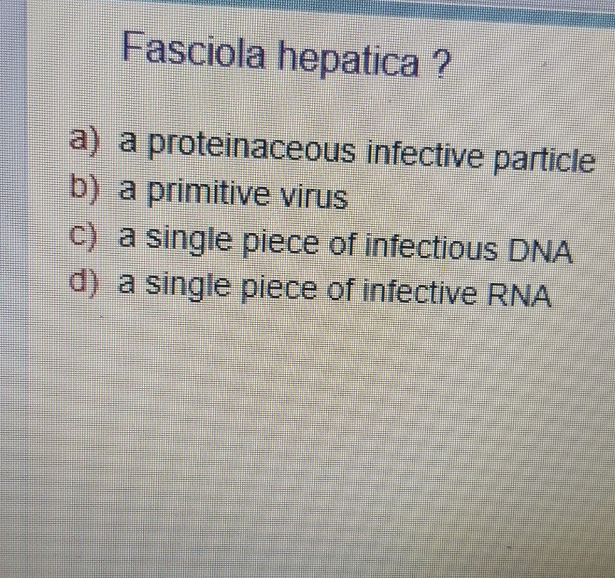 Solved Fasciola Hepatica A A Proteinaceous Infective Chegg Com